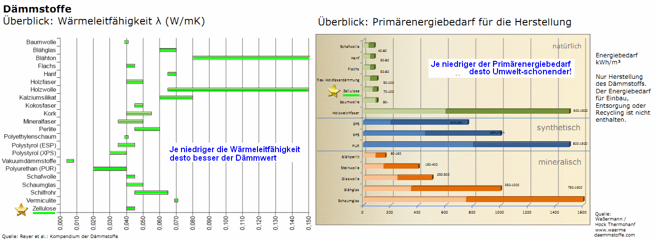 Sehr interessant auch ein Vergleich mit anderen Dämmstoffen; sehen
