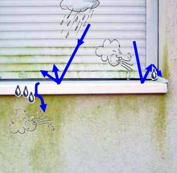 Bei waagerechten Fenstersimsen prallt starker Regen oder Hagel ab in