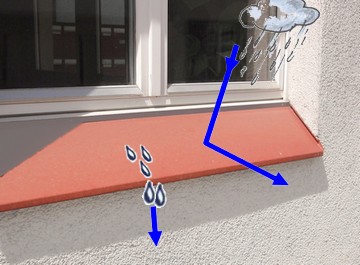 Regenwasser, welches auf dem Sims landet, fliesst dank