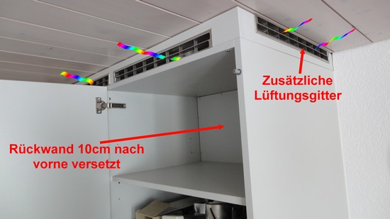 4cm nach vorne versetzt und dahinter der Luftkanal freigesägt.