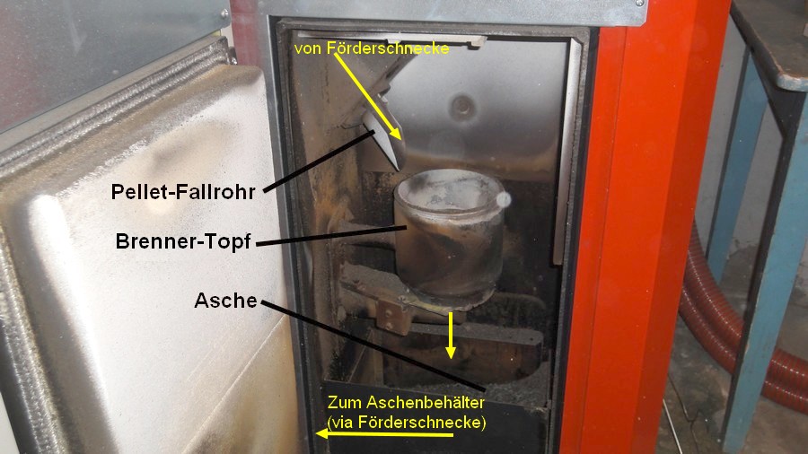 Die Förderschneckt hebt die Pellets hoch ins Fallrohr Je nach Wärmebedarf fördert die Schnecke mehr oder weniger Pellets