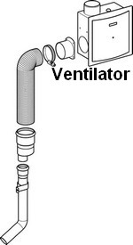 Zwischen dem Spülkasten und dem Thron ist die Rohrverbindung mit einem "T" als Zwischenstück zu verbinden. Über eine Ventilation wird nun durch dieses Zwischenstück jedes Geruchsmolekül zu 100% abgesaugt. Näher an die Quelle kommt keiner heran! Die Wärme im Raum entweicht praktisch nicht! Viel Energie